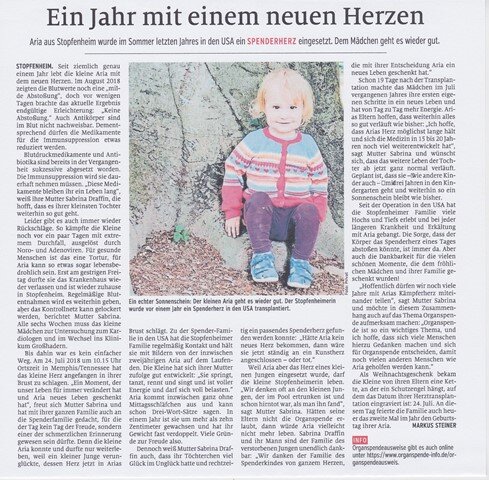 Wir berichten weiterhin über Arias Leben mit HTX (Herztransplantation):