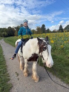 Die Reittherapie konnte 2024 als einzige Therapie weitergeführt werden, sie ist eine haltgebende Konstante für den Jungen, daraus schöpft er viel Kraft und Zuversicht.