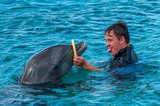 Levin wurde im Oktober 2025 mit einer Delfintherapie unterstützt.